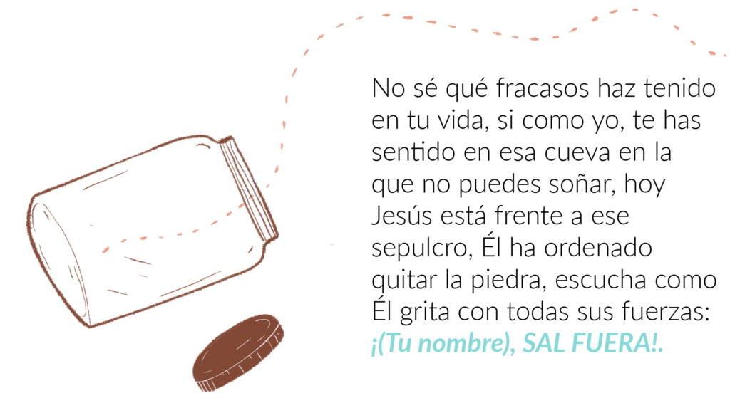 Es tan impactante, porque es la situación por la cual estoy pasando en mi vida. Poco a poco he ido perdiendo mis sueños, he tenido salir de la cueva y no saber que encontrar.. pero este mensaje me reconforta y me hace entender que Jesús me llena de fortaleza y me impulsa a salir de mis miedos y me anima a volver a soñar.. gracias Te admiro demasiado 🌺