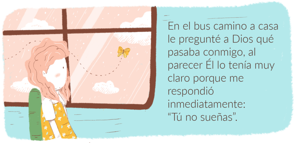 Me queda claro que debo seguir entregando mis sueños al Señor. Él abrirá caminos donde no los hay para que logre mis sueños! Y recordar que todo será en su tiempo, no en el mio.